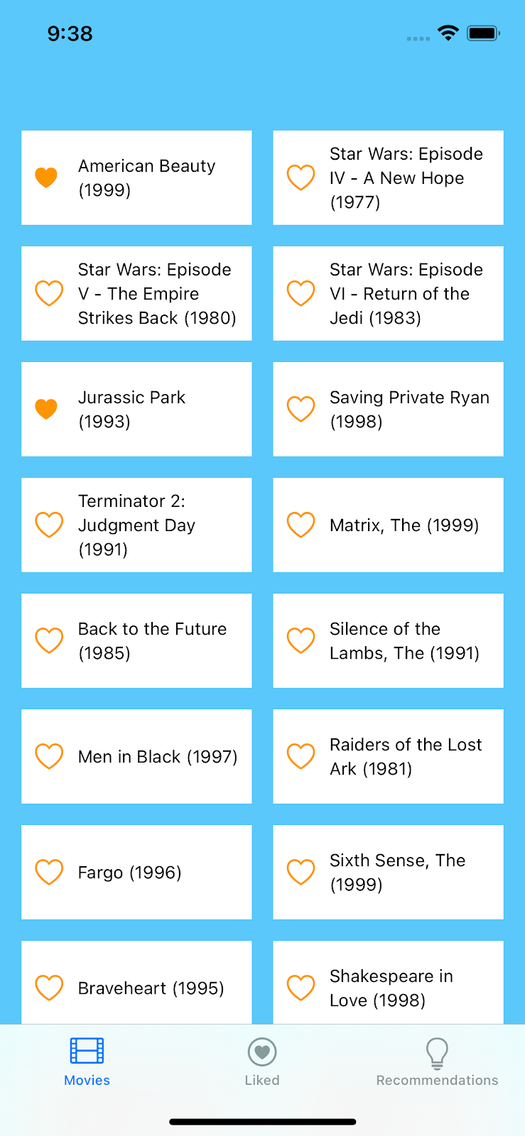 - Uygulamayı başlatmak ve Beğenilenler listenize bazı filmler eklemek için Xcode'da Run'ı (Çalıştır) seçin.