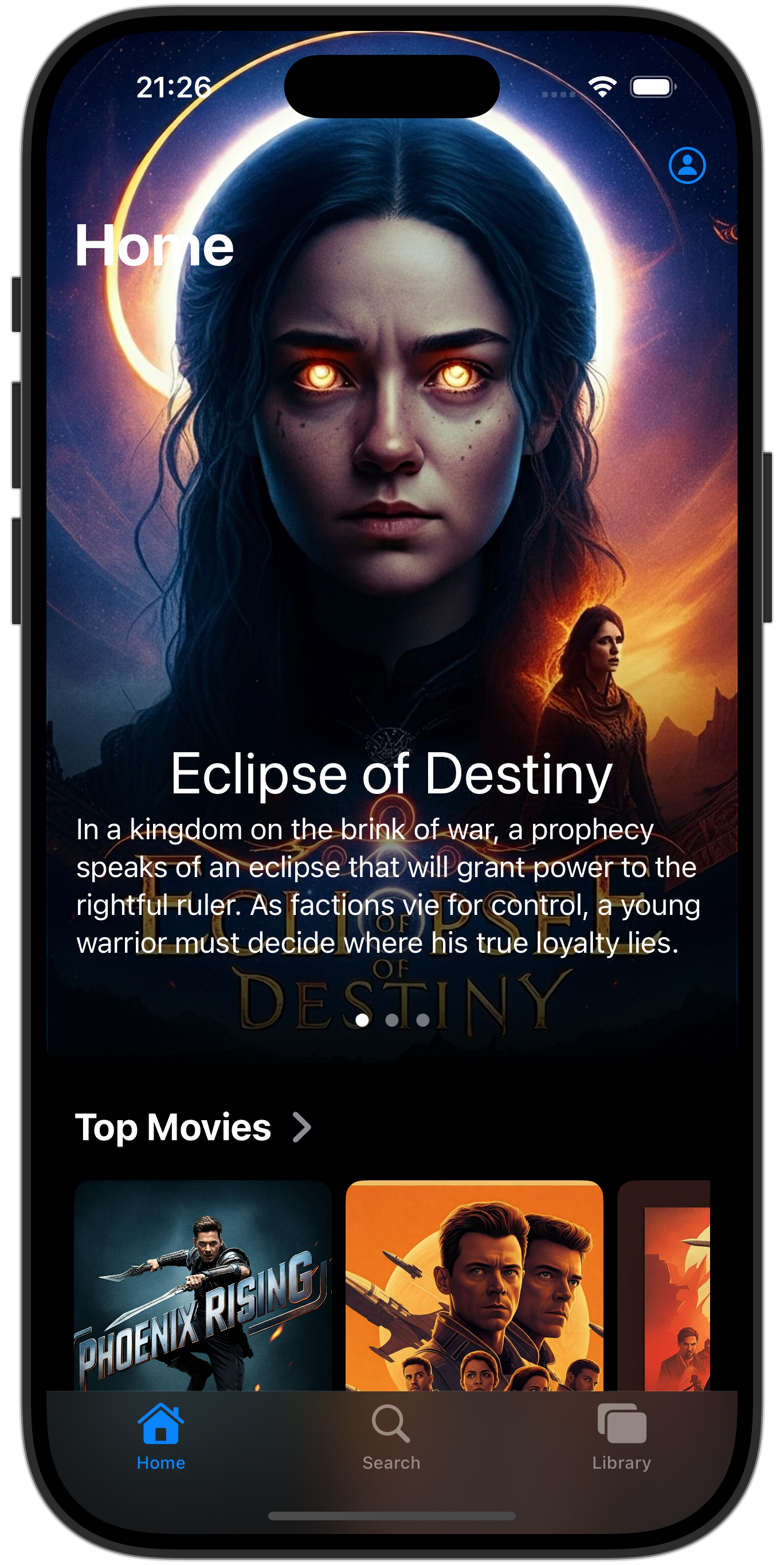 - アプリが起動したら、映画カードをタップして映画の詳細を表示します。