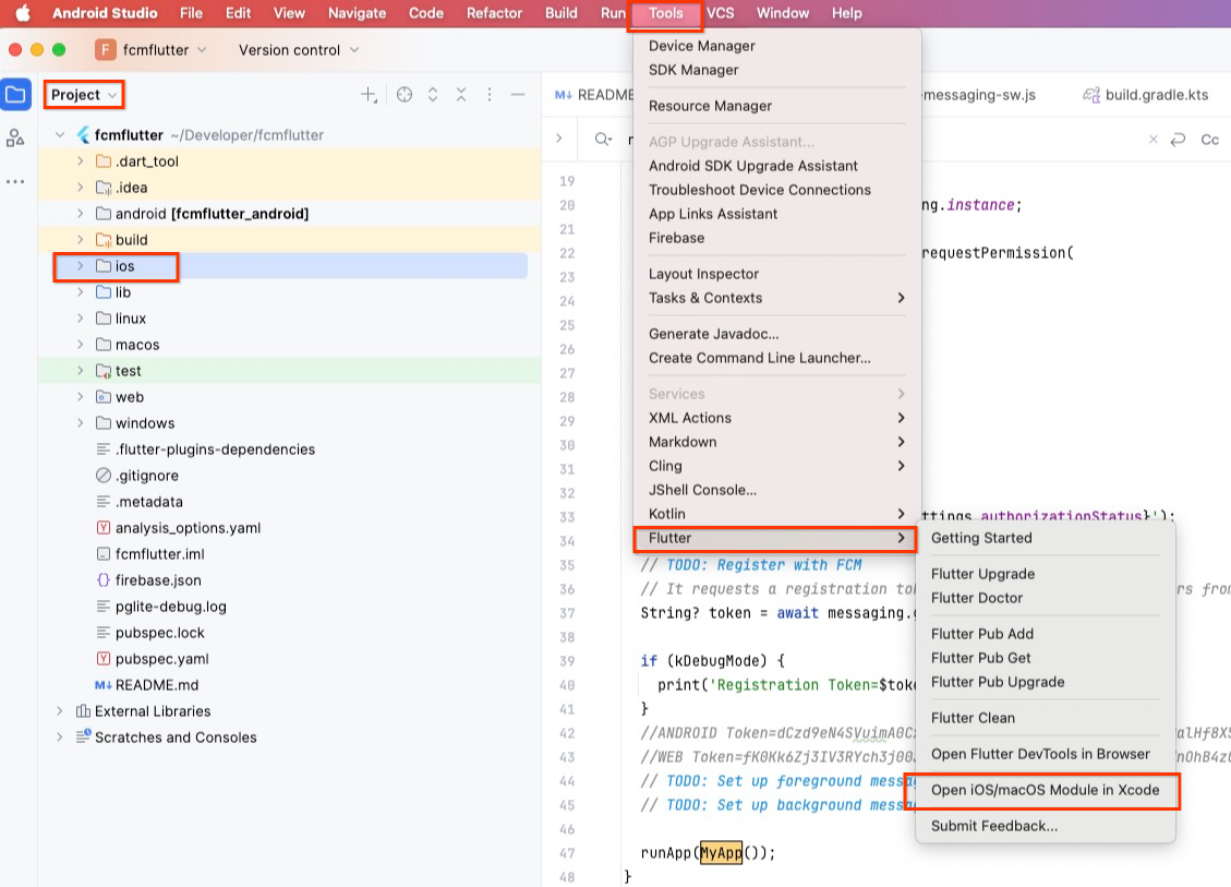 Send and receive notifications for a Flutter app using Firebase Cloud Messaging
