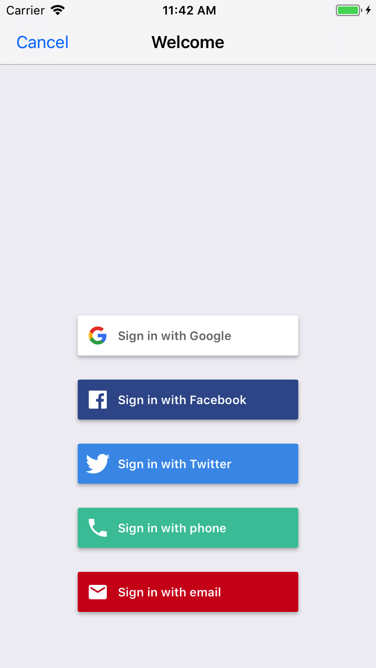 pod 'FirebaseUI'Se preferisci, puoi aggiungere solo il componente Auth e i provider che vuoi utilizzare: