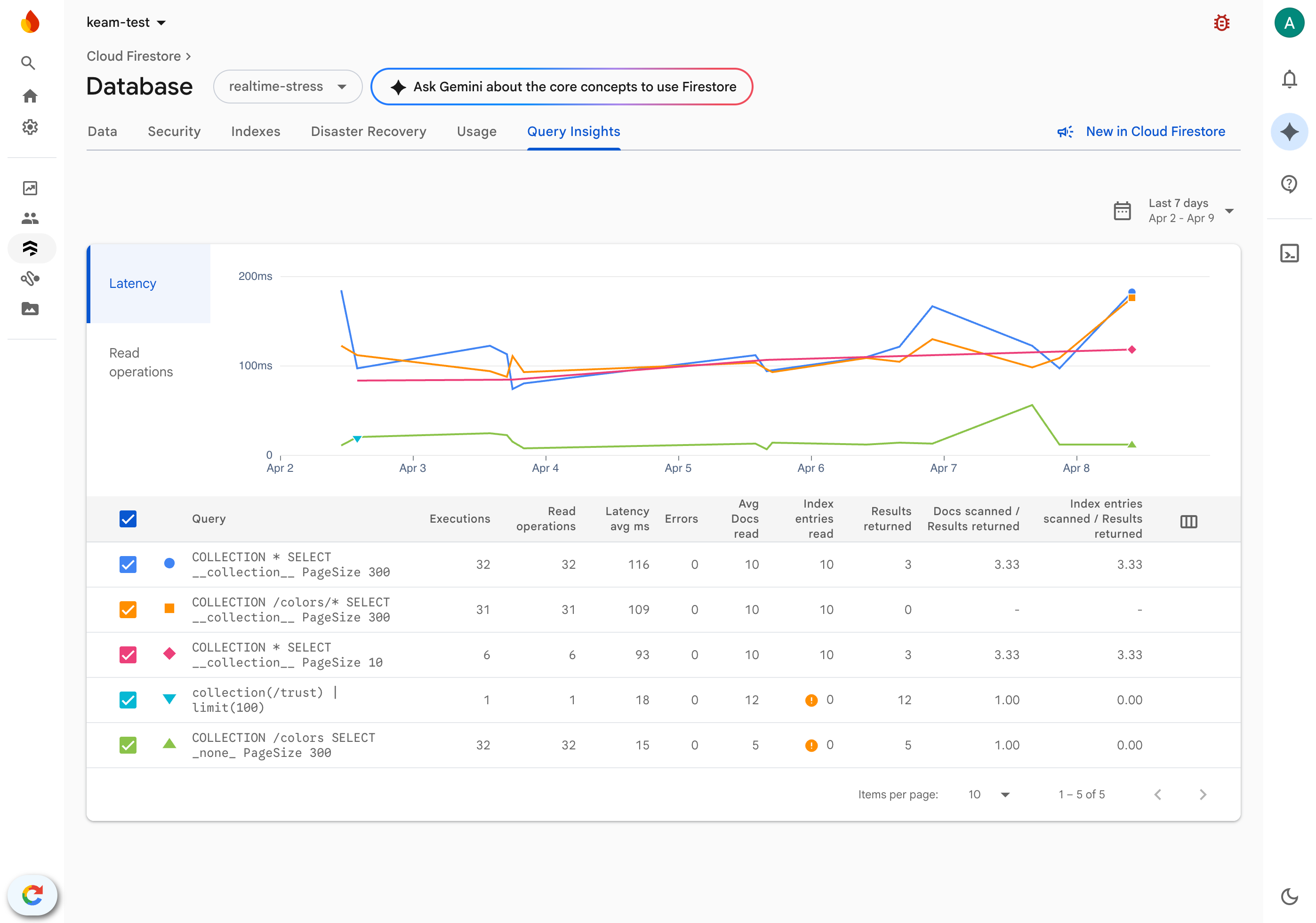 - একটি Firebase ডেটাবেসের কোয়েরি ইনসাইটস দেখতে, Google Cloud কনসোলে ডেটাবেস কোয়েরি ইনসাইটস প্যানেটি খুলুন।