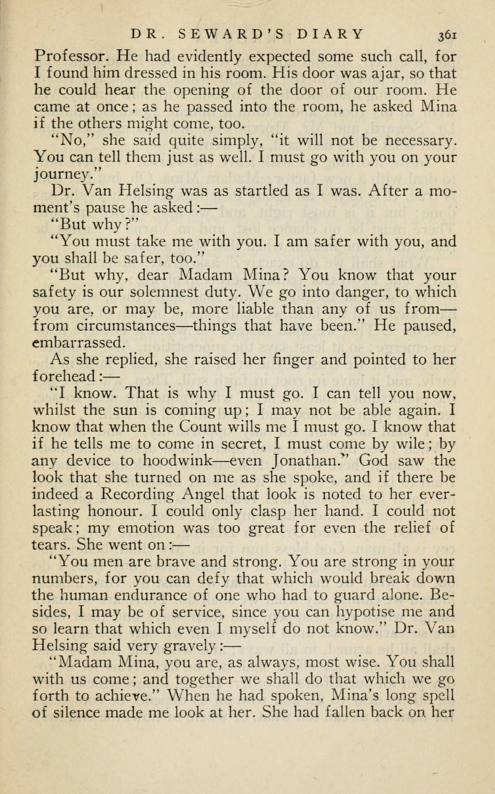 | Texte | " No , " she said quite simply , " it will not be necessary . You can tell them just as well . I must go with you on your journey . " |