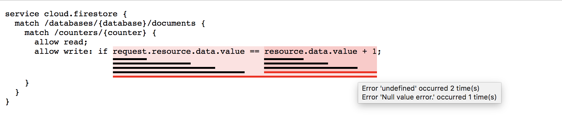 Cloud Firestore を使用してユーザーがボタンをクリックした回数をカウントするアプリの例を考えてみましょう。このアプリでは次のルールを使用します。